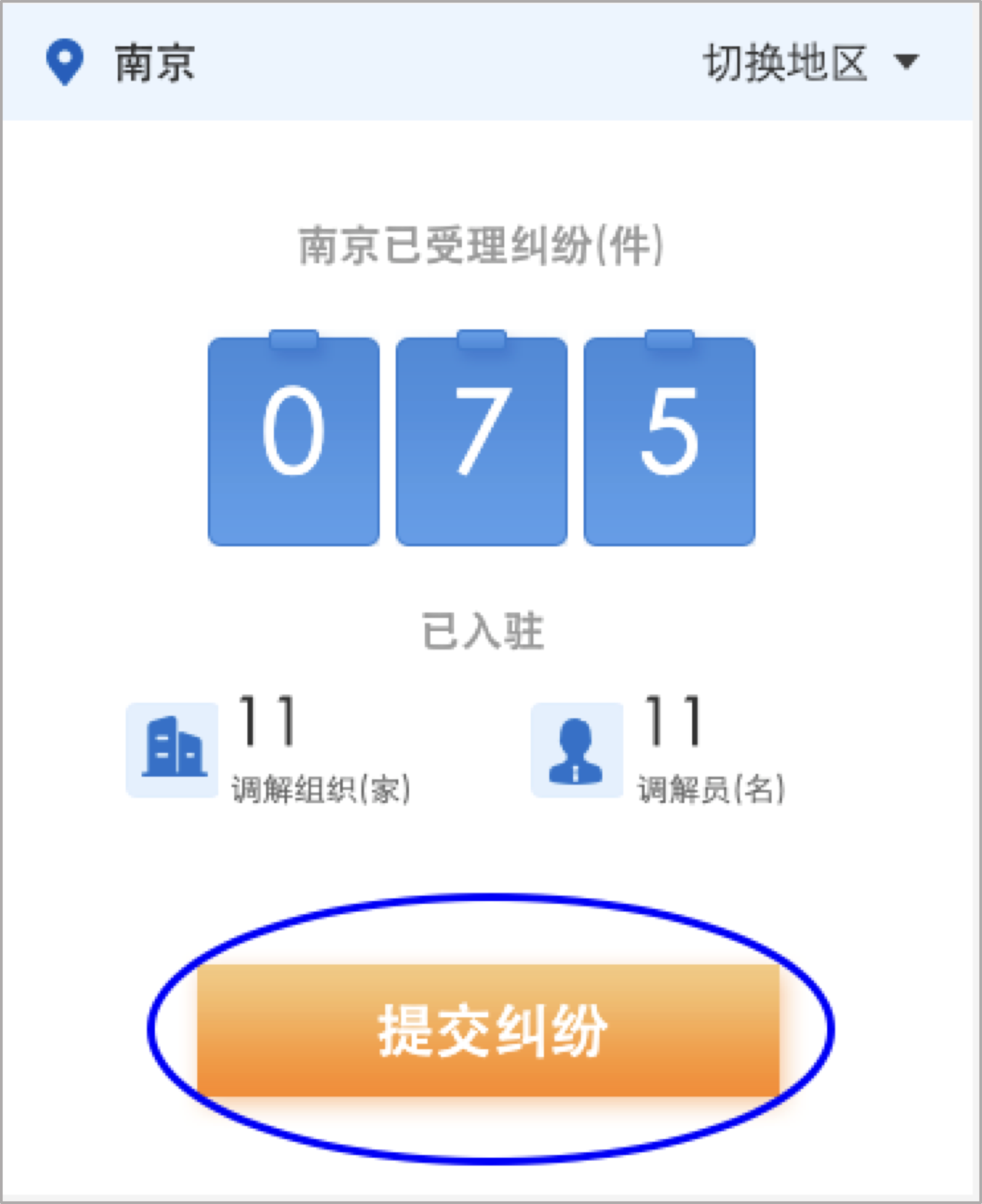第一步:在首页选择当地工商联,点击“提交纠纷”